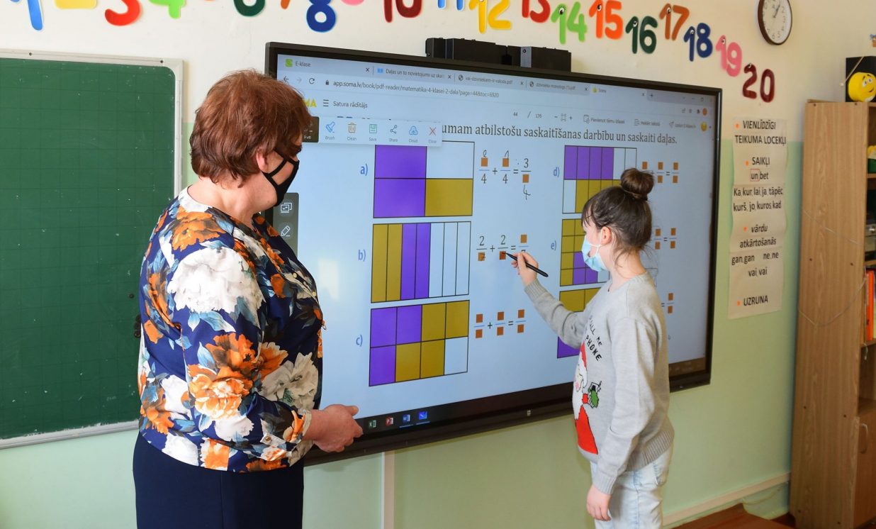 “Patiesībā tas ir izaicinājums. Es tikai sāku to apgūt. Iepriekš man bija nedaudz savādāka tāfele, tāpēc bija nedaudz bailes. Šeit ir nedaudz ērtāk un vieglāk. Bet vēl ir daudz nezināmā, tāpēc es mācos kopā ar bērniem. Mums notiek kādi izaicinājumi, viens otru pamācam,” stāsta sākumskolas skolotāja Lilita Bērziņa.