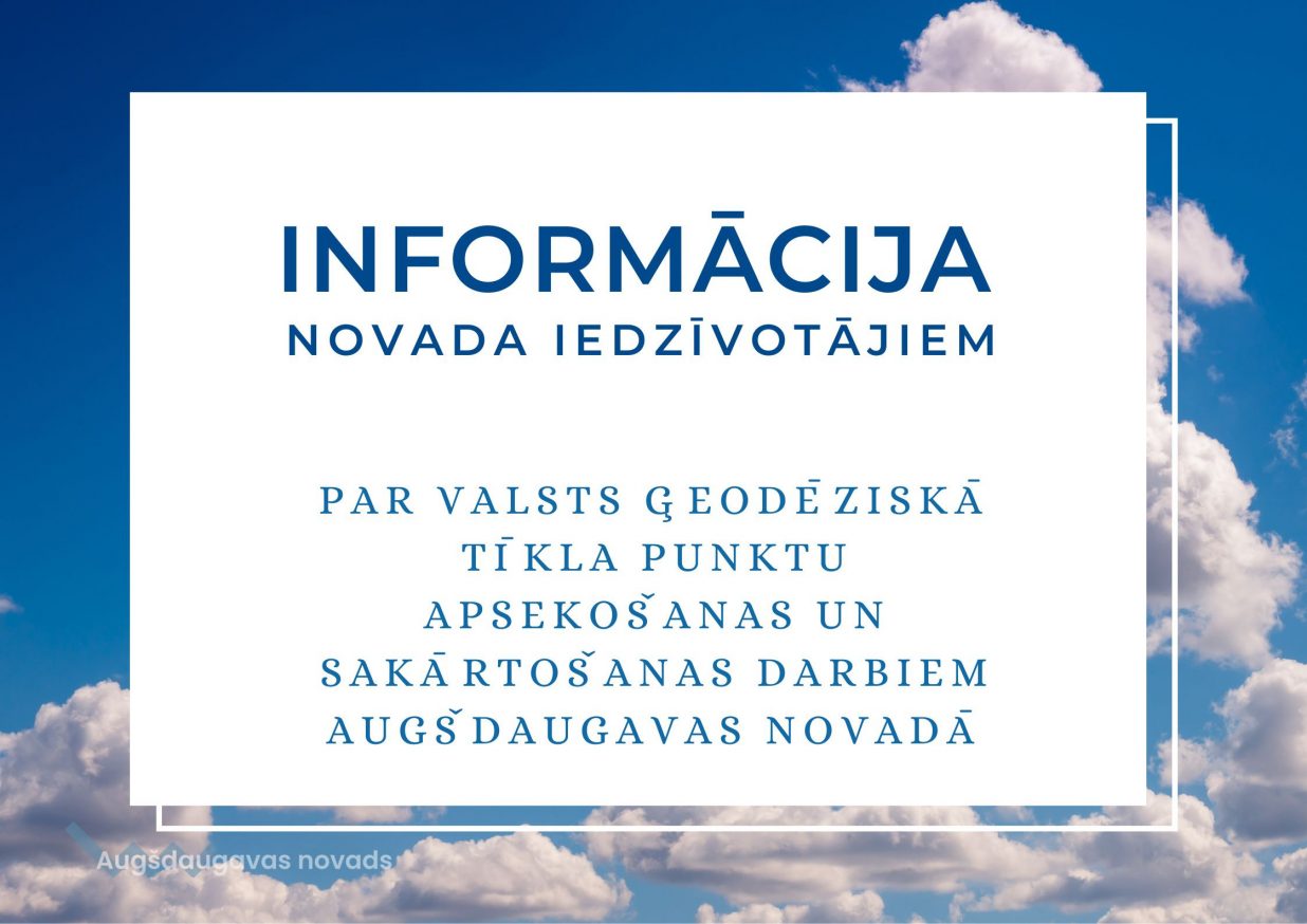 2022. gada augustā Aģentūras darbinieki uzsāk valsts ģeodēziskā tīkla punktu apsekošanas un sakārtošanas darbus Daugavas kreisā krasta novados. Augšdaugavas novadā apsekos valsts ģeodēziskā tīkla punktus Sventes, Kalkūnes, Medumu, Demenes, Laucesas, Skrudalienas, Salienas, Eglaines, Ilūkstes, Pilskalnes, Prodes, Subates un Šēderes pagastos.