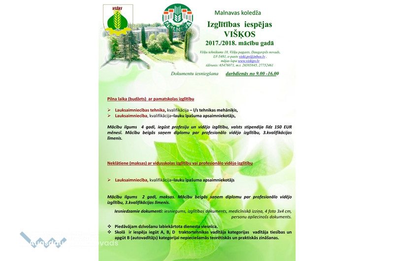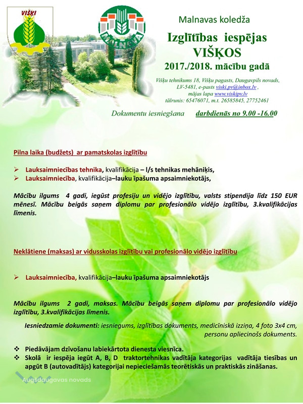 Izglītības iespējas Višķos 2017./2018.mācību gadā