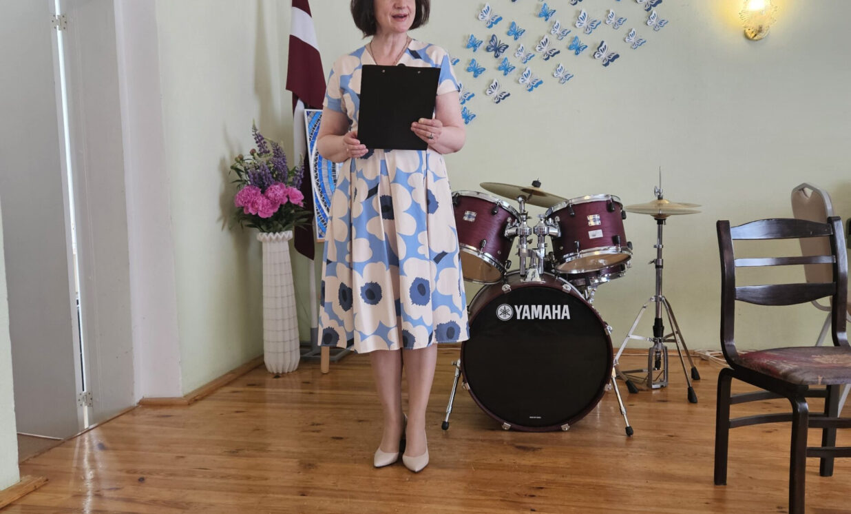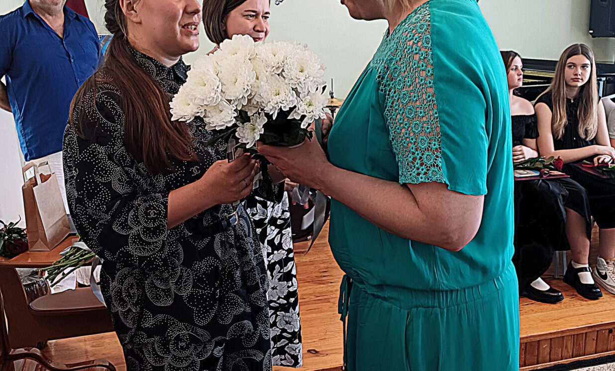 Apsveikt absolventus ieradās arī Staņislava Broka Mūzikas vidusskolas pūšaminstrumentu spēles pasniedzēja Daiga Maskaļūne, kura novēlēja absolventiem neapstāties pie sasniegtā un turpināt attīstīt savas radošās prasmes arī tālāk.