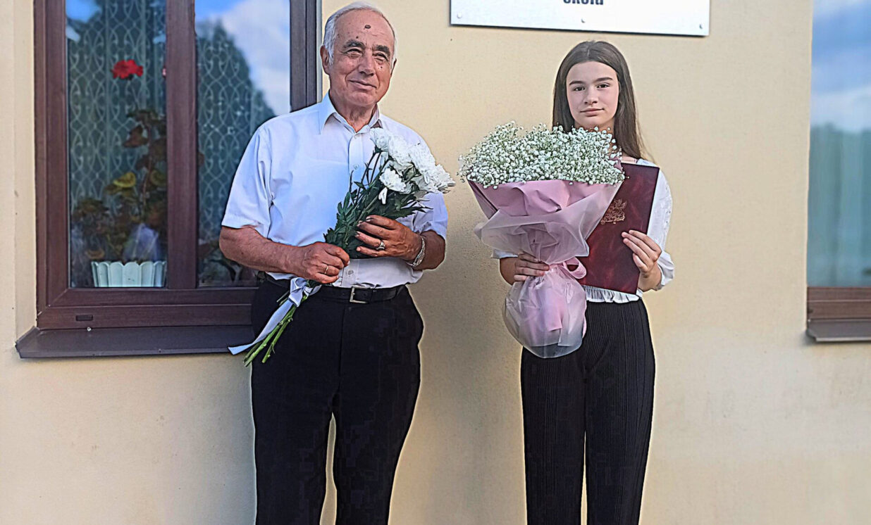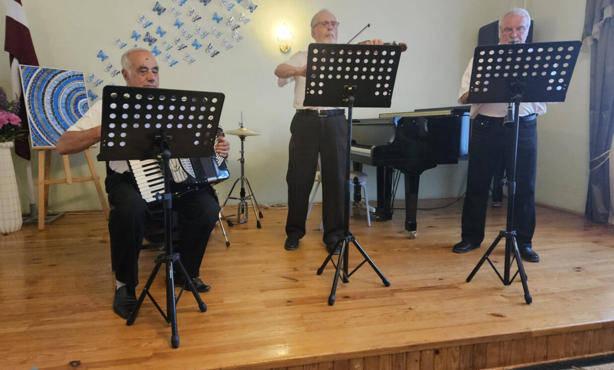 Absolventus un viesus pie skolas ar muzikālo priekšnesumu sagaidīja Naujenes Mūzikas un mākslas skolas pūšamo instrumentu orķestris, kura vadītājs ir Marats Zaletilo.