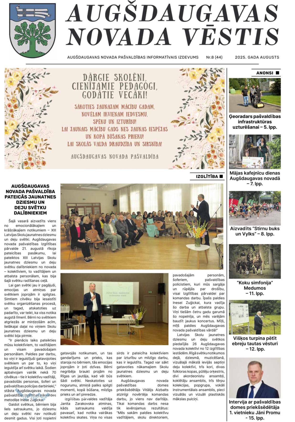 Iznācis "Augšdaugavas Novada Vēstis" augusta numurs. Šajā numurā lasiet: