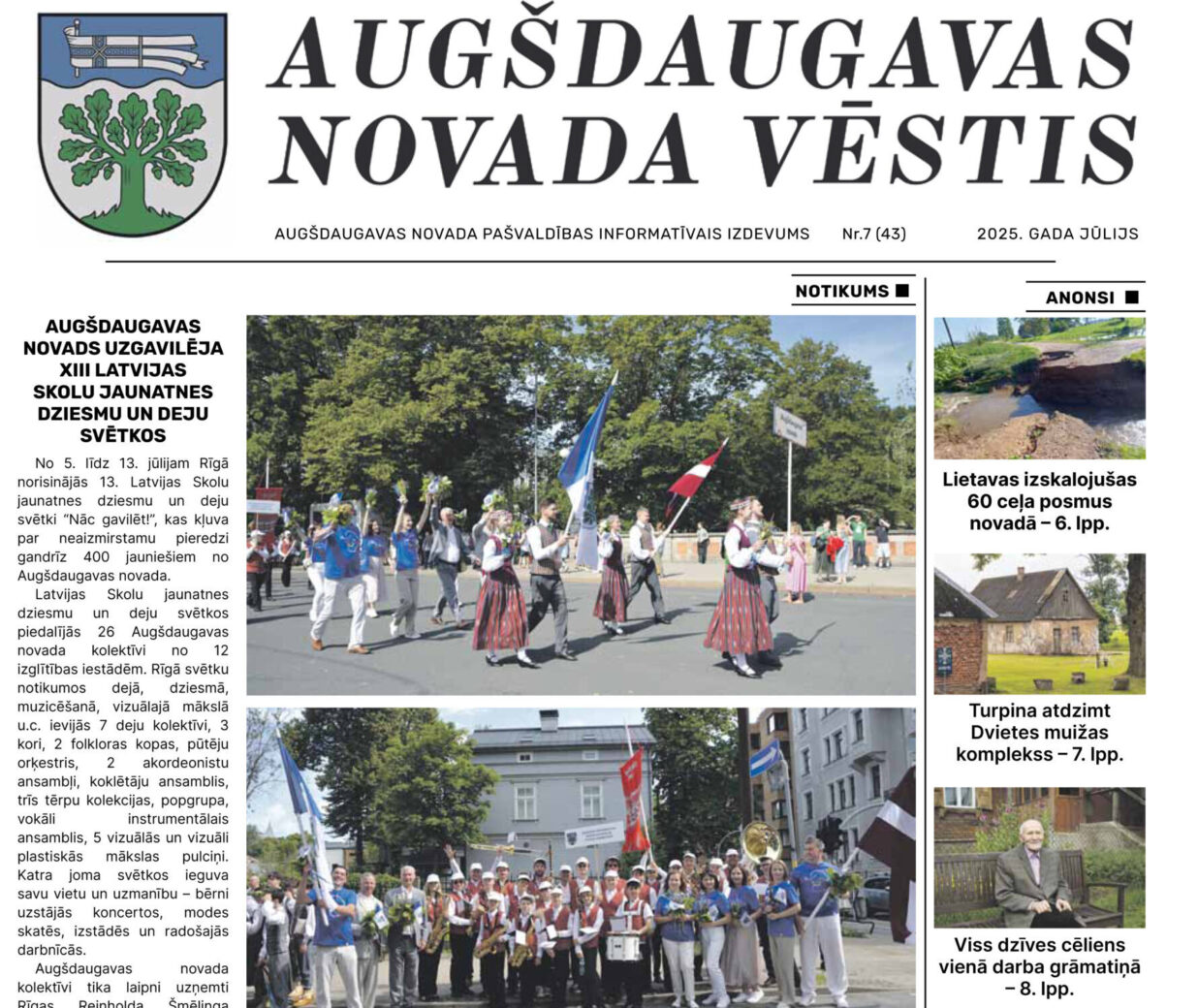 Iznācis "Augšdaugavas Novada Vēstis" jūlija numurs. Šajā numurā lasiet: