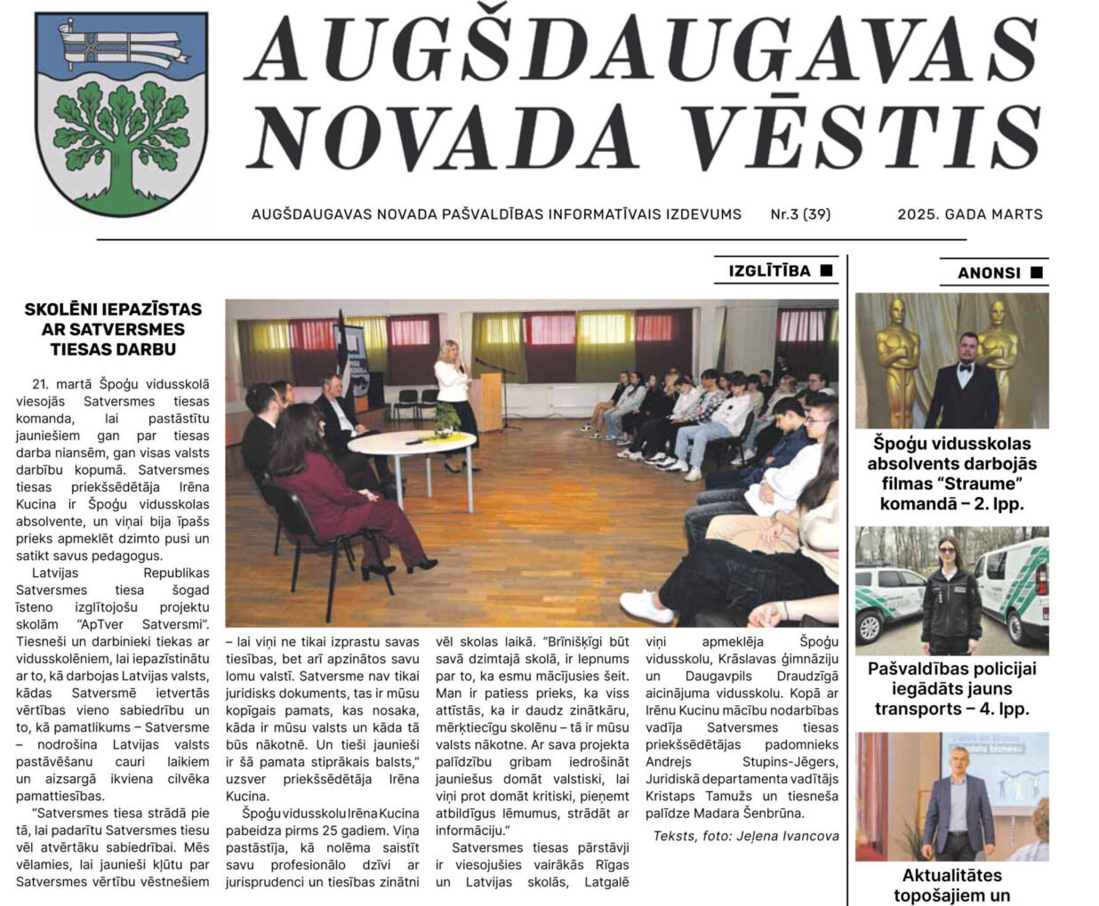 Iznācis "Augšdaugavas Novada Vēstis" marta numurs. Šajā numurā lasiet: