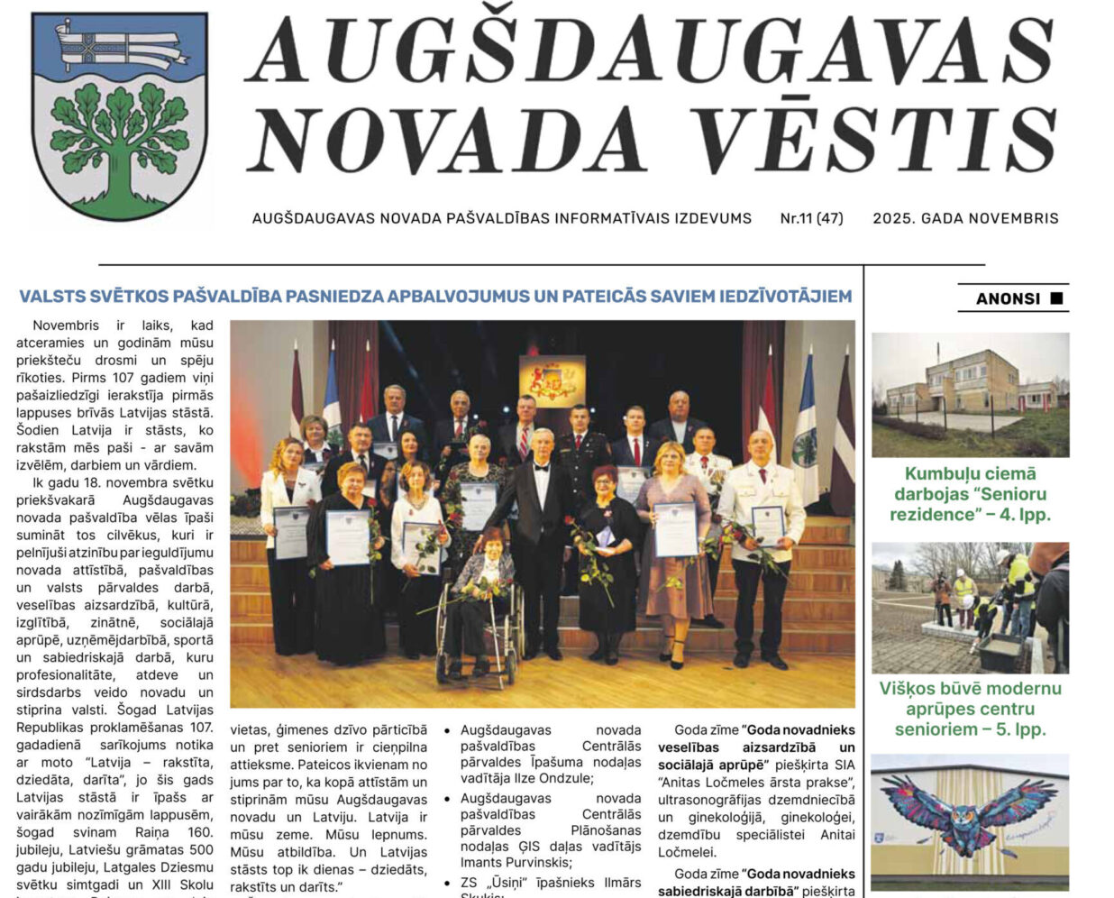Iznācis "Augšdaugavas Novada Vēstis" novembra numurs. Šajā numurā lasiet: