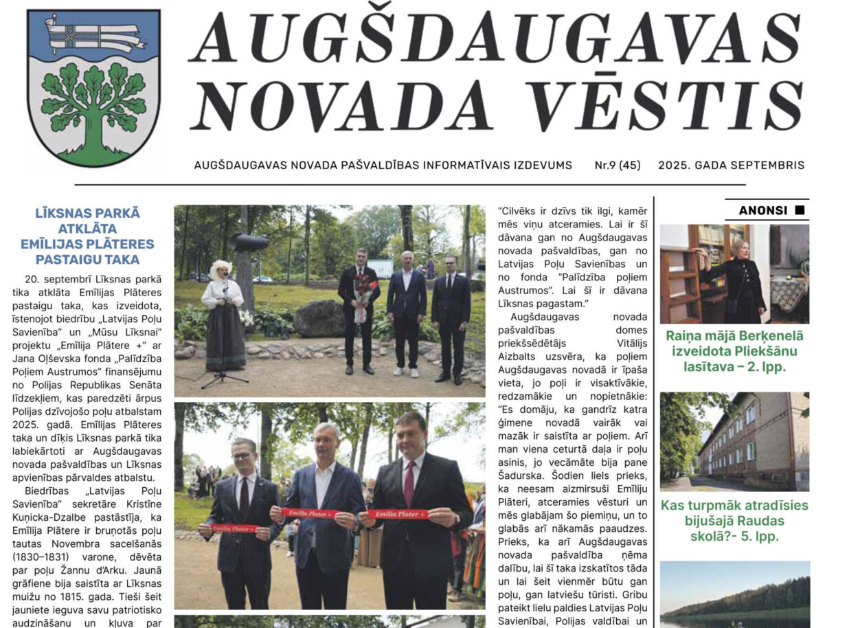 Iznācis "Augšdaugavas Novada Vēstis" septembra numurs. Šajā numurā lasiet: