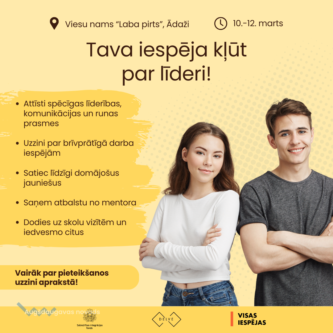 Biedrība “Delve” sadarbībā ar sociālo uzņēmumu “Visas Iespējas” izsludina pieteikšanos projektam “Jauniešu iespēju vēstnešu programma”.