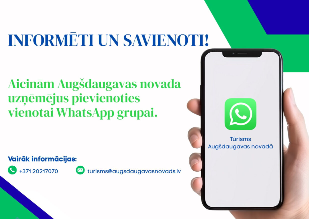 Lai veicinātu Augšdaugavas novada tūrisma nozares attīstību un nodrošinātu operatīvu informācijas apmaiņu, ir izveidota Augšdaugavas novada tūrisma uzņēmēju kopienas WhatsApp grupa.