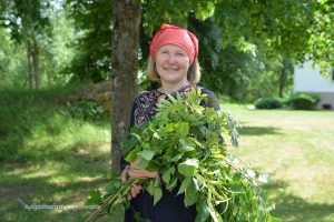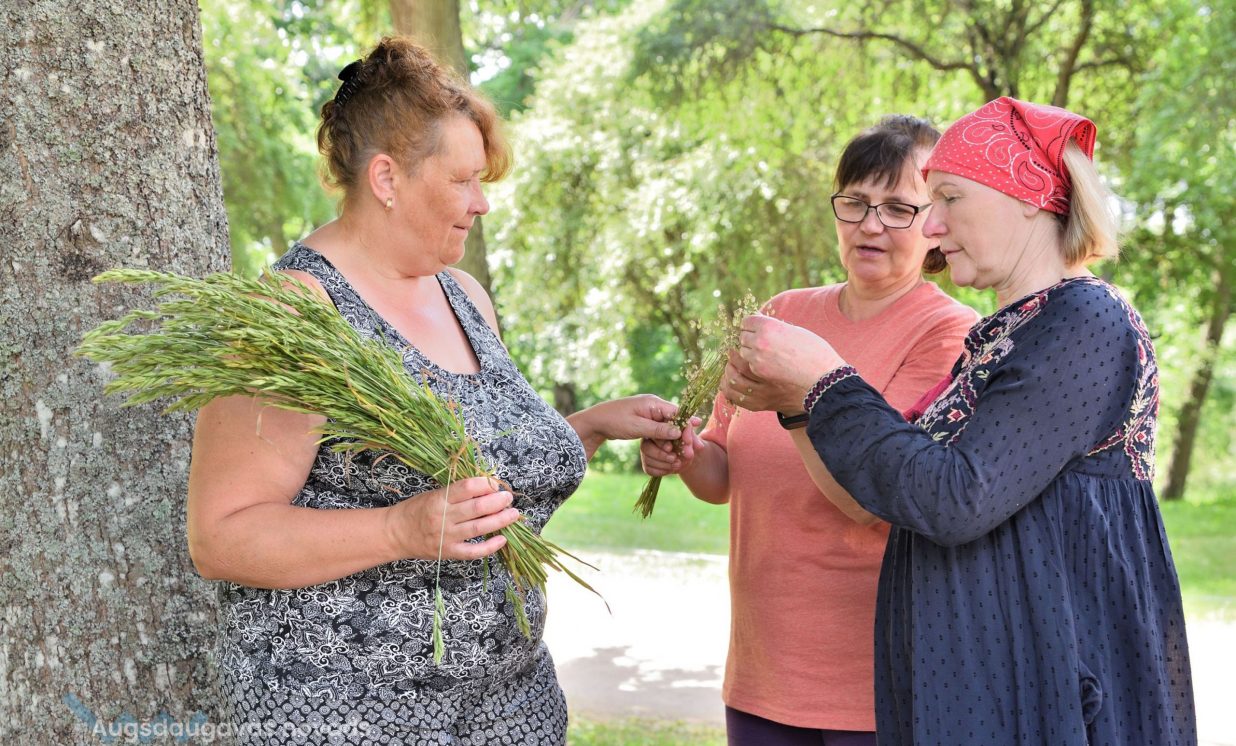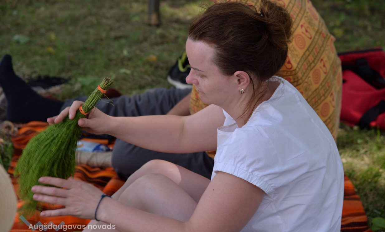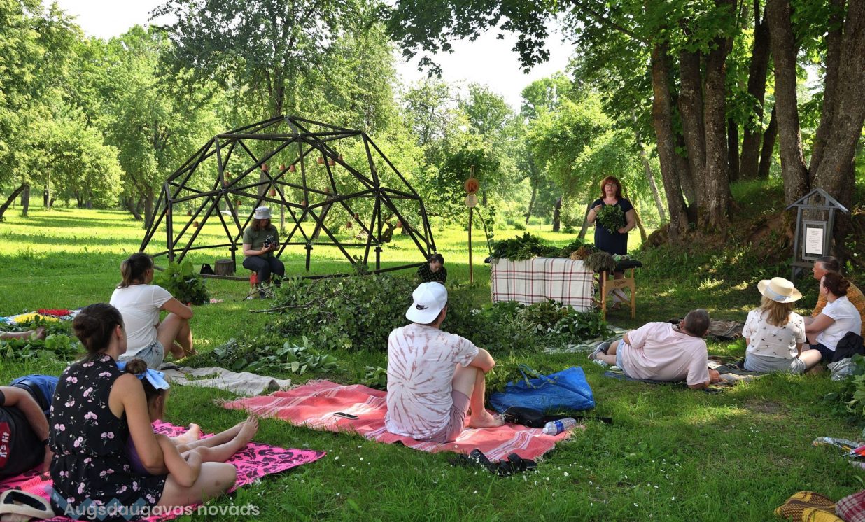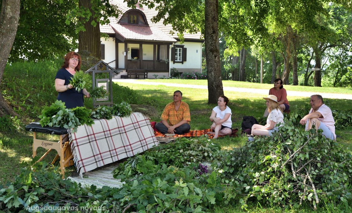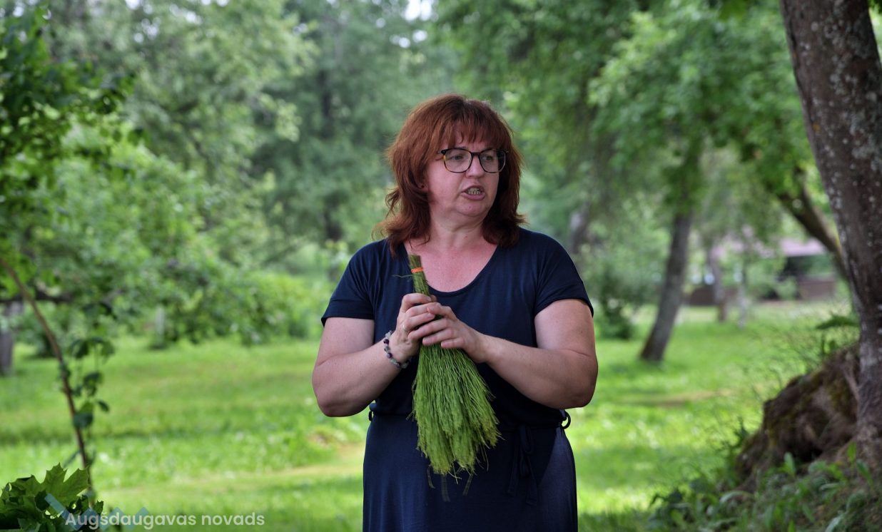 “Jāņi noteikti ir labs laiks slotu siešanai un augu vākšanai, jo šajā laikā dabā viss ir pilnbriedā, pļavas un meži vēl nav saules izdedzināti, viss ir dzīvības suliņām savilcies, skaists, kukaiņi lido, bites vāc medu. Pat var just, staigājot pa pļavām, šo aromātu un burvīguma vibrāciju,” teic pirtniece. Pasākuma apmeklētājiem Dzintra stāstīja, kādi augi piemēroti slotiņām, kā tos pareizi ievākt un siet, kā arī aicināja izmēģināt sauso pērienu.