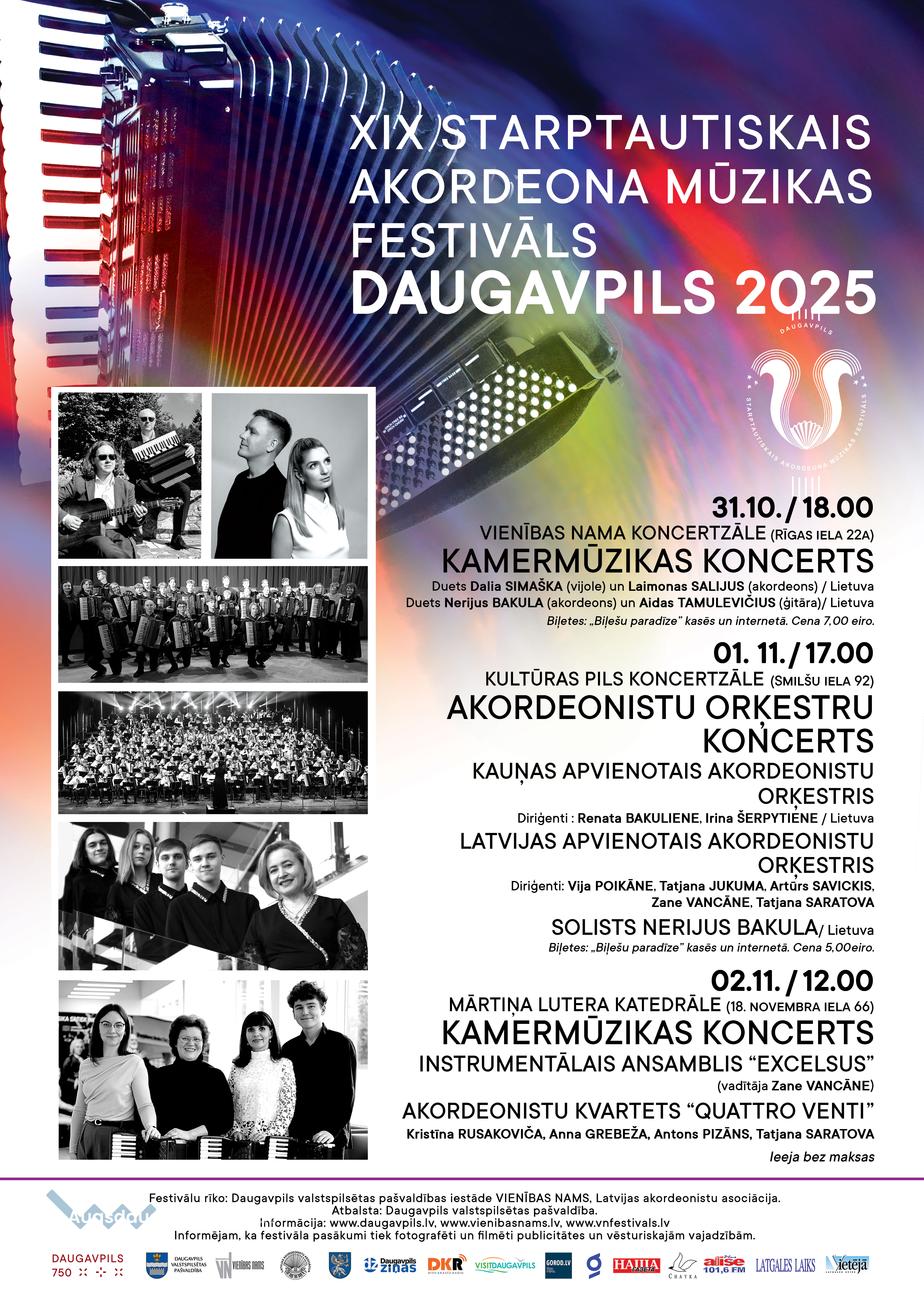 Festivālu rīko Daugavpils valstspilsētas pašvaldības iestāde „Vienības Nams”, Latvijas akordeonistu asociācija. Atbalsta: Daugavpils valstspilsētas pašvaldība. Informējam, ka festivāla koncerti tiek fotografēti un filmēti publicitātes un vēsturiskajām vajadzībām.