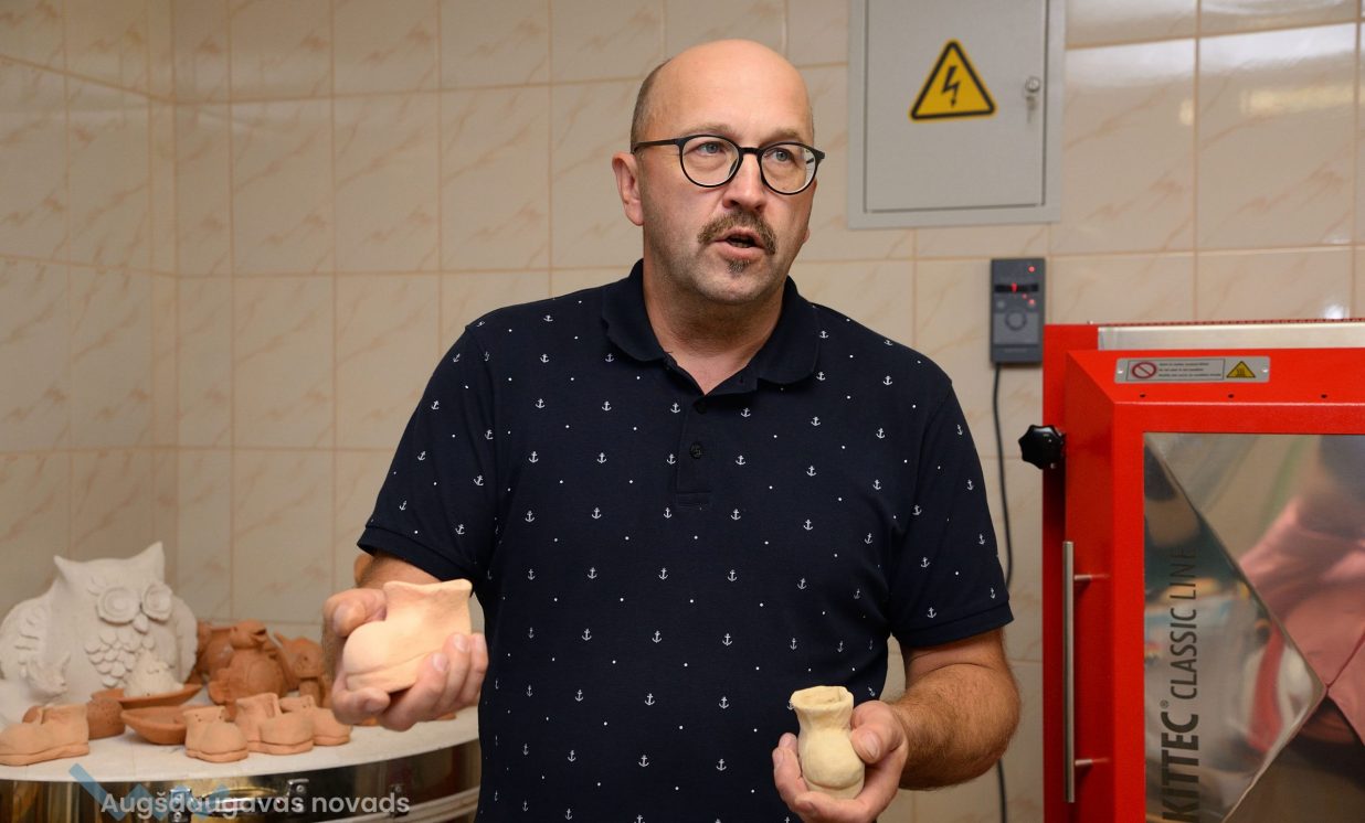 Keramiķis Valdis Grebežs stāsta, ka tūlīt jau būs gatava kārtējā darbu porcija, kuras apdedzināšanai bija nepieciešamas aptuveni četras stundas un 800 grādi karstuma.