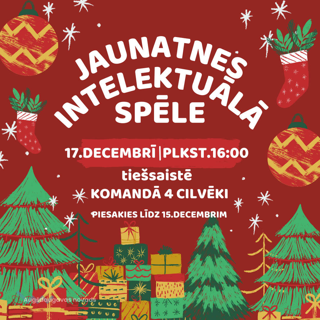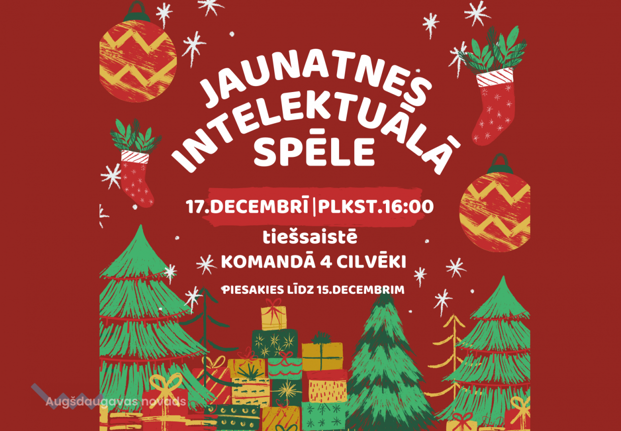 Aicinām skolu un jaunatnes komandas pieteikties jaunatnes intelektuālai spēlei, kas norisināsies 17.decembrī plkst.16:00 tiešsaistē.