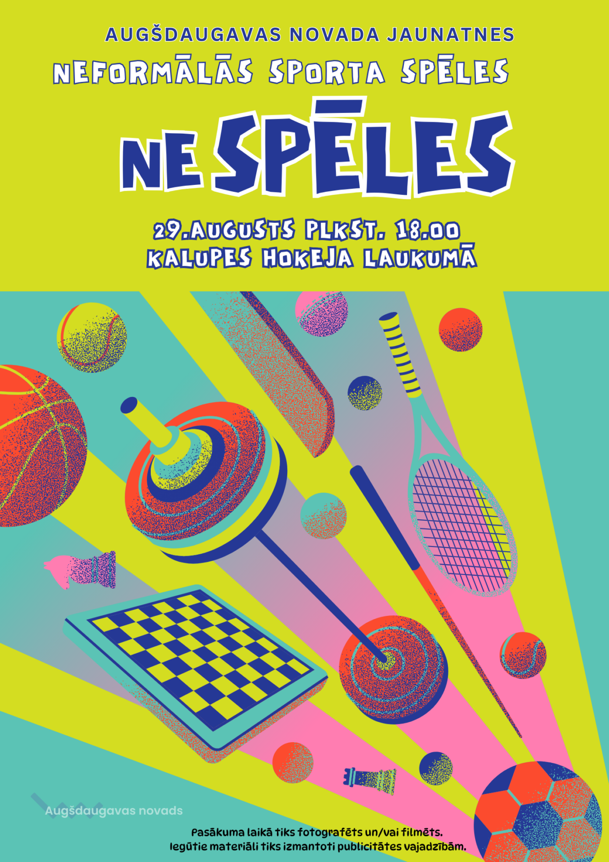 Aicinām uz aizraujošu un aktīvu vakaru, kas būs pilns ar neparastiem sporta izaicinājumiem un lielisku kompāniju! Augšdaugavas novada jaunatnes neformālās sporta spēles “neSPĒLES” norisināsies 2024. gada 29. augustā Kalupes hokeja laukumā, sākot no plkst. 18.00 līdz plkst. 21.00.