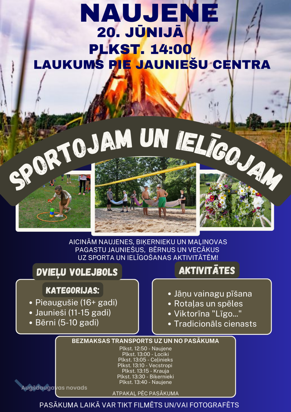 Aicinām ikvienu izbaudīt vasaras priekus kopā ar mums! Sāksim Līgo svinēšanu ar jautrām un kustīgām aktivitātēm!