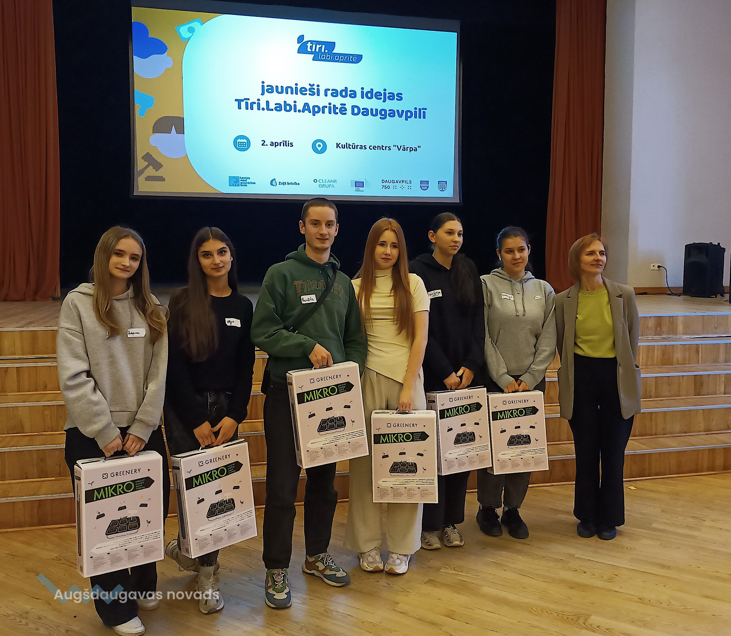 2. aprīlī Augšdaugavas kultūras centrā “Vārpa” norisinājās ideju radīšanas pasākums jauniešiem “Tīri.Labi.Apritē”. Tajā piedalījās 12 komandas no Daugavpils valstspilsētas, Augšdaugavas un Ludzas novada. Jauniešu komandas piedāvāja dažādus ilgtspējīgus risinājumus – no otrreizēju materiālu izmantošanas telpu uzlabošanai un izlietoto bateriju otrreizējas izmantošanas līdz tekstila atkritumu pārstrādei, makulatūras pārvēršanai dekoratīvās lampās un bioatkritumu pārstrādes sistēmu pilnveidošanai.