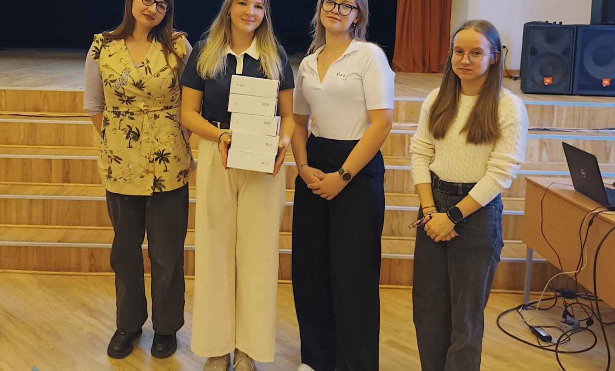 “Gudro prātu brigāde” no Sventes vidusskolas ieguva otro vietu. Jaunieši piedāvāja ilgtspējīgu izlietot bateriju pielietojumu, papildinot praktisko ideju ar izglītojošām nodarbības skolēniem.