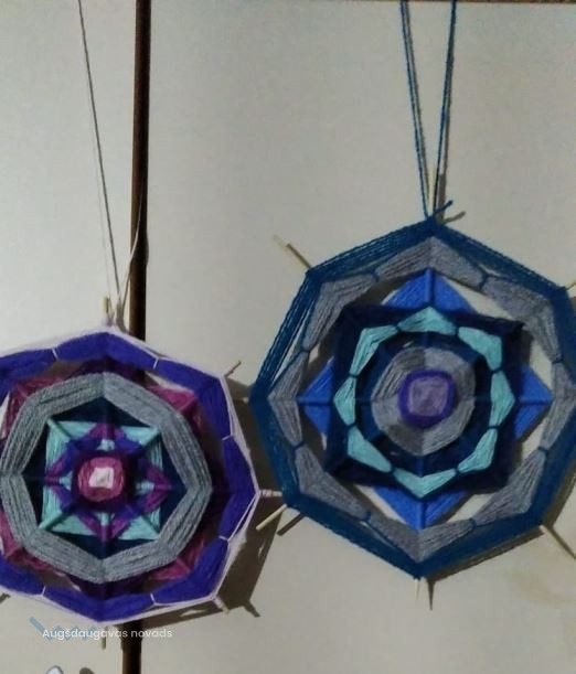 Tad vēl izmēģinājām veidot ko jaunu - krāsainās mandalas no diegiem.
