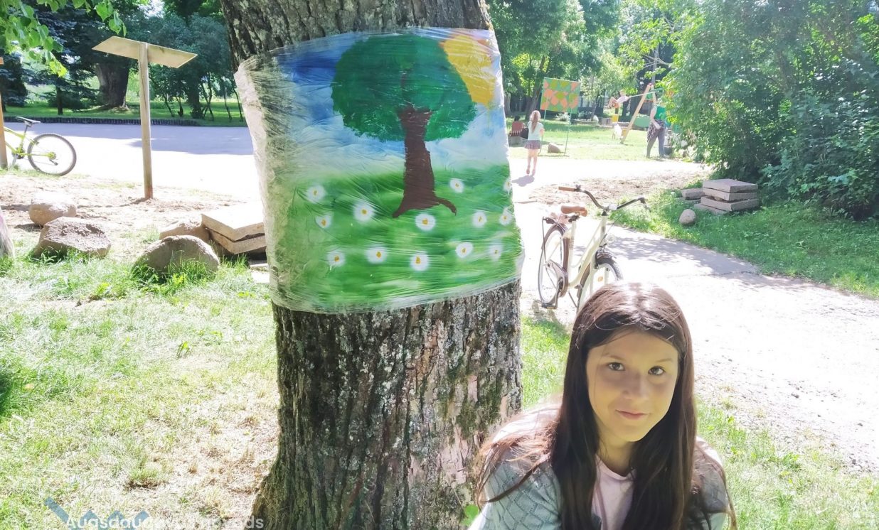 Šogad mēs turpinājām izdaiļot mūsu omulīgo ciemu ar dažādiem veidojumiem, kā vēja zvani, kas tika veidoti no attīrītiem koka zariem. Tos mēs krāsojām un likām kokos parkā pie Medumu pagasta pārvaldes ēkas, kā arī veidojām “koku gleznas”, kuras tika veidotas Medumu parkā, nenodarot dabai kaitējumu, bet izdaiļojot apkārtni.