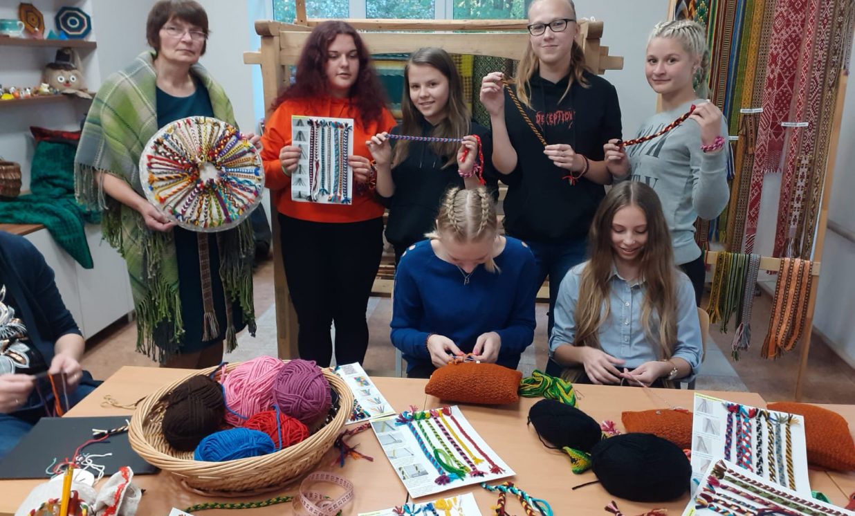 Skrindu dzimtas muzejs Latgales kultūras programmas atbalstītā projekta ‘’Vakariešona munā sātā’’ ietvaros sadarbībā ar audēju DaciTeivāni organizēja radošas meistardarbnīcas. Sakarā ar COVID–19 valstī noteiktajiem ierobežojumiem meistardarbnīcās varēja piedalīties tikai viena Vaboles vidusskolas klase. 9. klases meitenes kopā ar audzinātāju D.Žilvinsku apguva dažādas pīnīšu pīšanas tehnikas. Meitenes darbojās ar lielu interesi. Tika darinātas dažādas draudzības rokassprādzes, grāmatzīmes u.tml. Dace Teivāne parādīja un pastāstīja jaunajai paaudzei, kā var noaust jostas dažādās tehnikās. Audēja sniedza ieskatu arī lupatu deķīšu aušanas tehnikas apguvē. Čaklās skolnieces atzina, ka arī turpmāk vēlētos apgūt dažādas rokdarbu prasmes pie zinošās audējas Daces. Nākamās nodarbības ir ieplānotas 10.novembrī.
