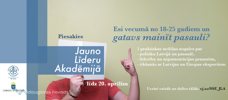 Rīgas Ekonomikas augstskola (SSE Riga) sadarbībā ar Zviedrijas vēstniecību Latvijā izsludina pieteikšanos uz „Jauno līderu akadēmiju”. Programmas mērķis ir izglītot, iedvesmot un attīstīt jaunos potenciālos Latvijas politiķus un sabiedrības līderus vecumā no 18 līdz 25 gadiem.