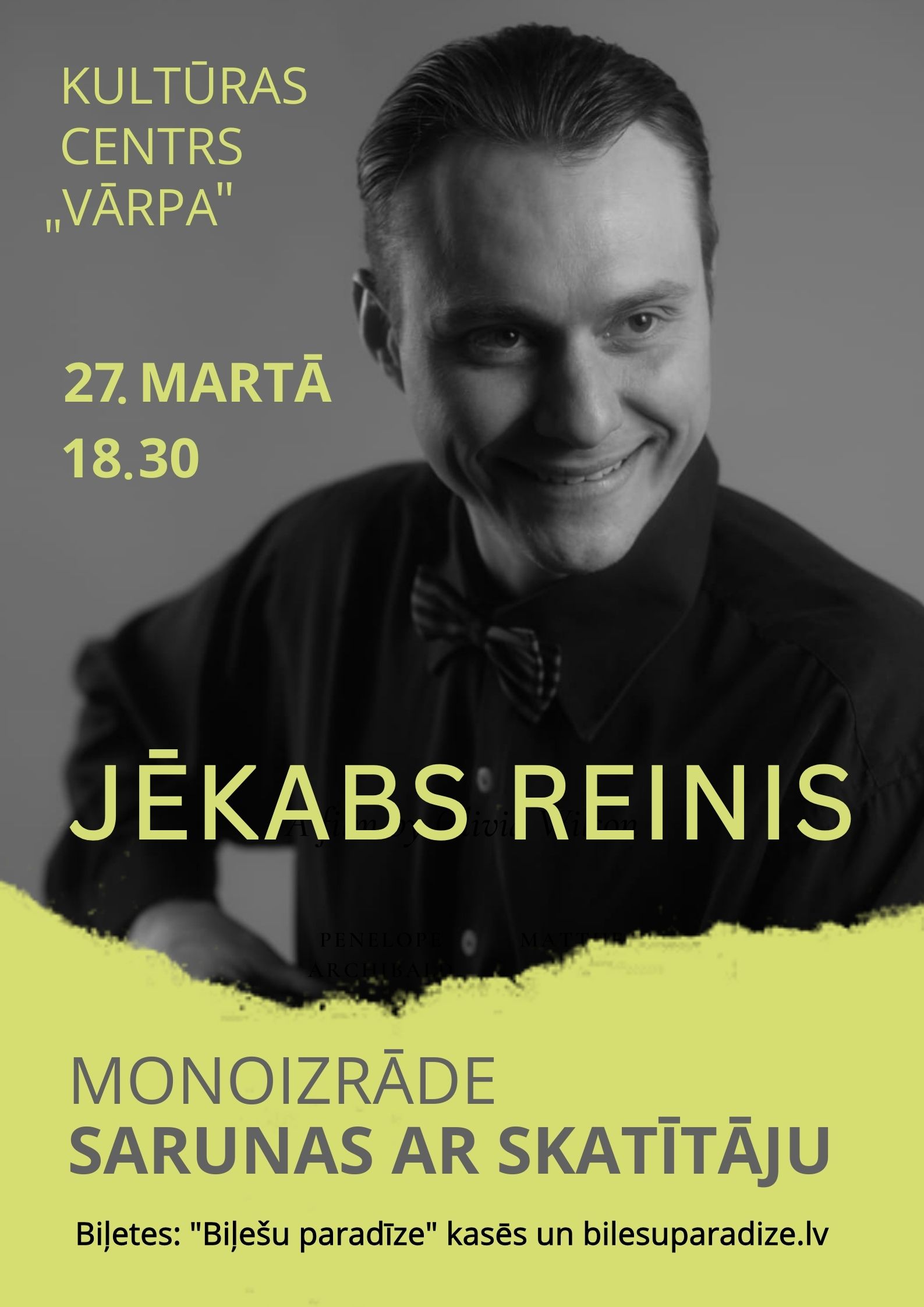Starptautiskajā teātra dienā, 27.martā plkst.18.30 Kultūras centrā "Vārpa" JĒKABA REIŅA monoizrāde "Saruna ar skatītāju".