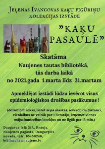 Naujenes tautas bibliotēkā atklāta Jeļenas Ivancovas kaķu figūriņu kolekcijas izstāde “Kaķu pasaulē”.