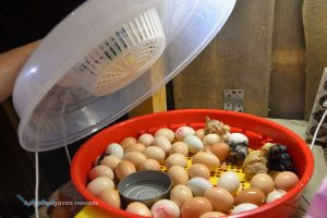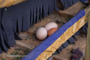 Galvenokārt saimniecībā dzīvo Leghornas brūnās vistas. Ganāmpulkā pašlaik ir 70 dējējvistas, taču mobilā kūts paredzēta vismaz 250 putniem. Cik ilgā laika posmā tiks sasniegts tik liels vistu ganāmpulks, Juris vēl nemācēja teikt, taču iegādātais inkubators tagad ļauj perināt cāļus pašu saimniecībā. Nupat inkubatorā izšķīlušies cālīši, ar kuriem ņemšanās ir tikpat daudz kā ar maziem bērniem. Tiklīdz cālēns no iekšpuses ir izskrubinājis čaulā caurumiņu, olas pastāvīgi jāmitrina, neļaujot iekalst, lai cālis var izšķilties. Jāizvāc nevajadzīgās čaumalas un jāraugās, lai mazajiem cālēniem nav par karstu.
