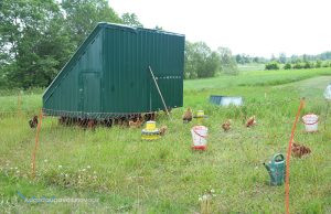 “Vistas uzturas maksimāli tuvu to dabiskajai videi. Nav ierobežots laiks, ko tās pavada ārā. No rīta vistas tiek izlaistas laukā, bet vakarā pašas ieiet mobilajā vistu kūtī,” stāsta Juris. No plēsīgiem dzīvniekiem mājputnus pasargā elektriskais siets apkārt aplokam. Turklāt vistas jau iemanījušās, ka, tuvojoties kādām briesmām, tās var paslēpties zem pārvietojamās kūts.