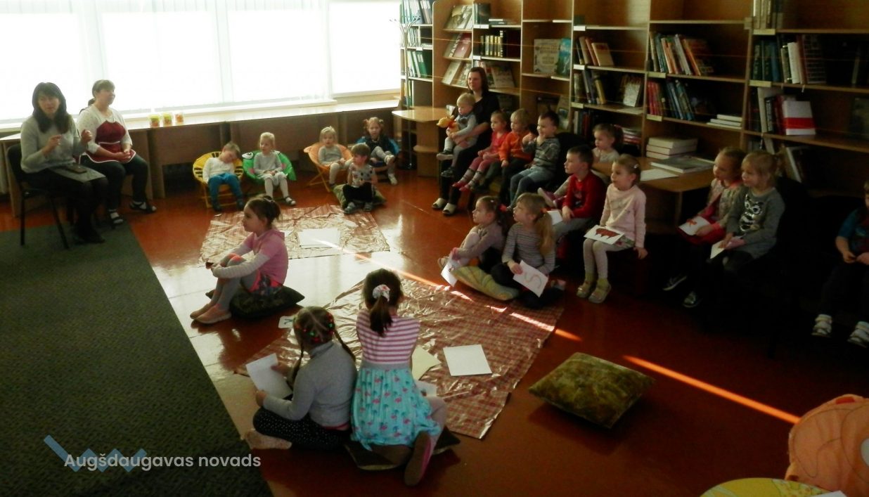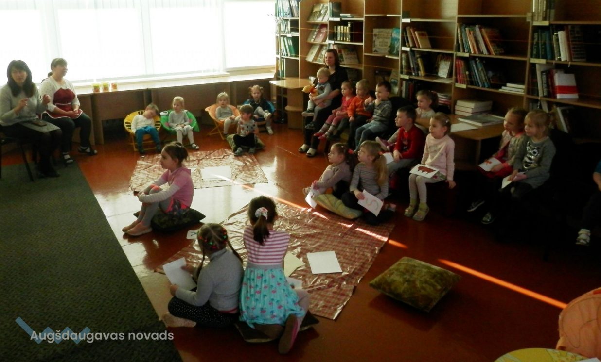 24. februāra priekšpusdienā Nīcgales bibliotēkā mazie lasītāji spēlēja un zīmēja skaņu spēles. Šai aizraujošajai un neparastajai nodarbībai bērni ierosmi atrada kopā ar audzinātājām, lasot grāmatu Radjarda Kiplinga grāmatu “Blēņu stāsti”.