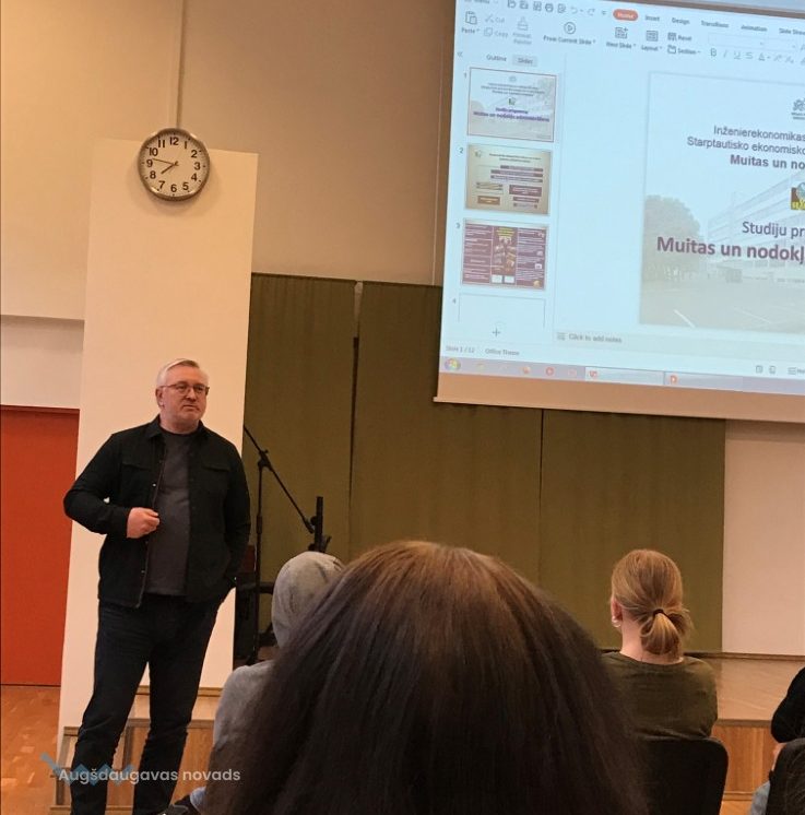 RTU mācībspēks uzsvēra muitas un nodokļu jomas aktualitāti mūsdienās un minēja galveno muitas funkciju, kas ir sabiedrības aizsardzība. Viņi sniedza ieskatu, kur strādā un ar ko nodarbojas muitas un nodokļu speciālisti, kā arī aicināja paskatīties video, kā šīs jomas pārstāvji strādā visā pasaulē. RTU pārstāvji aicināja jauniešus īpaši ieklausīties sevī, izvēloties savu nākotnes ceļu.