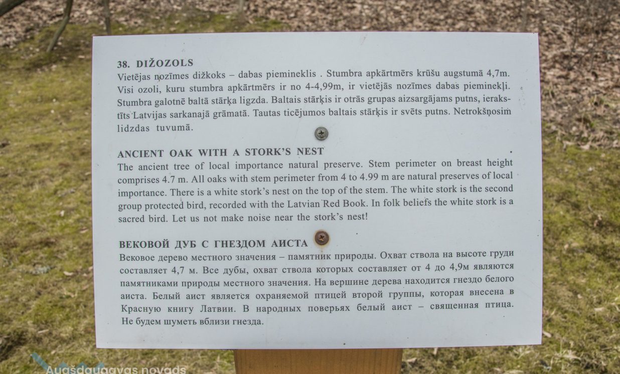 Eglaines pagasta ozols atrodas pie apdzīvotas viensētas. Salīdzinājumā ar citiem dižozoliem, tas nav pārāk augsts. Arī vainags nav pārāk kupls, tomēr stumbrs padevies - 5,5 m.