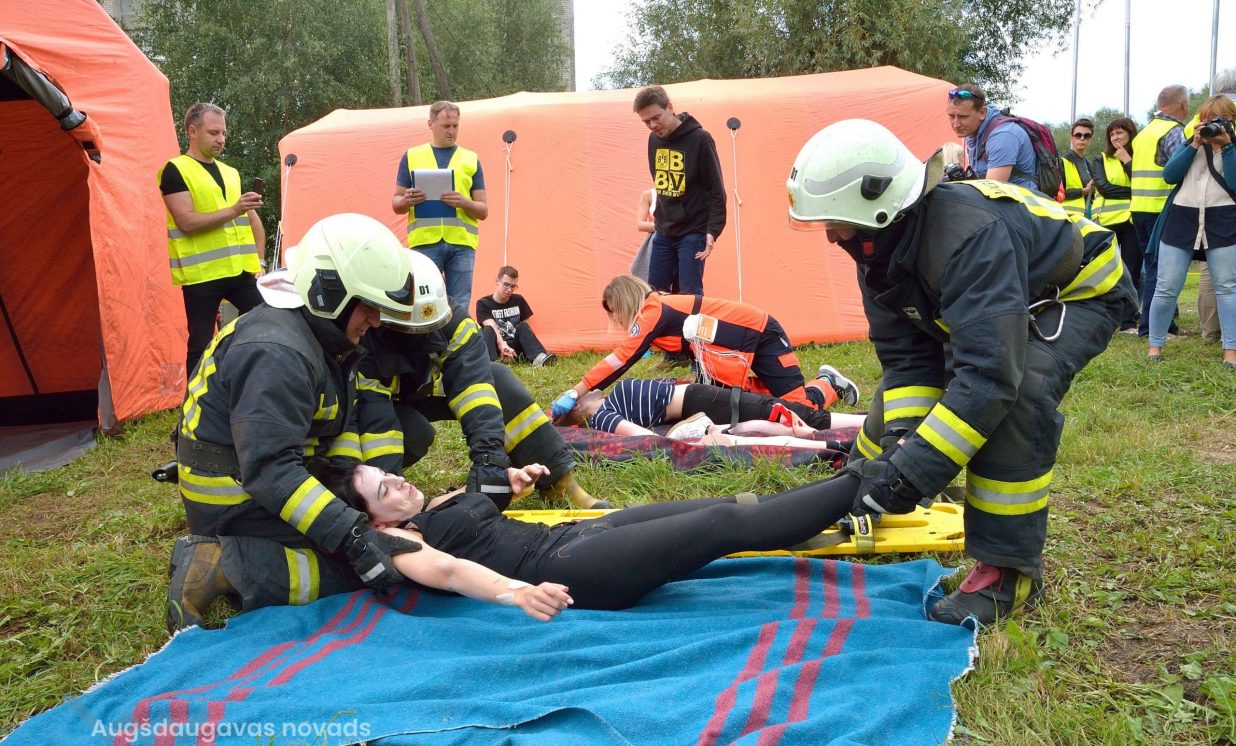Glābt cietušos praktizējās arī mediķu brigādes. “Uz papīra, protams, mēs esam gatavi vienmēr, kā arī mazākā apjomā iemaņas regulāri trenējam. Šāda apmēra praktiskās mācības būtu vajadzīgas vismaz reizi gadā, lai varētu trenēt gan vadības ārstu, gan šķirotājus, gan mācētu prasmīgi evakuēt cietušos no notikuma vietas,” atzīst NMPD direktora vietnieks operatīvajos jautājumos Kristians Galanders.