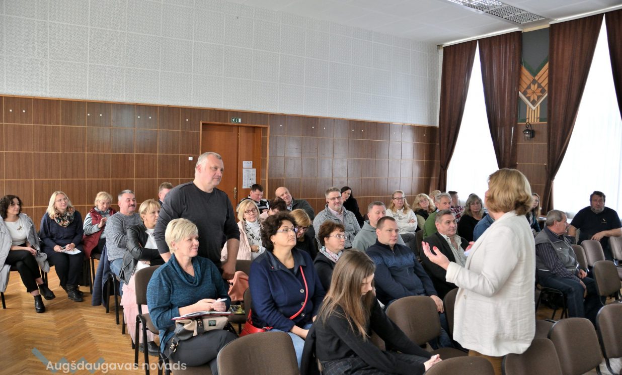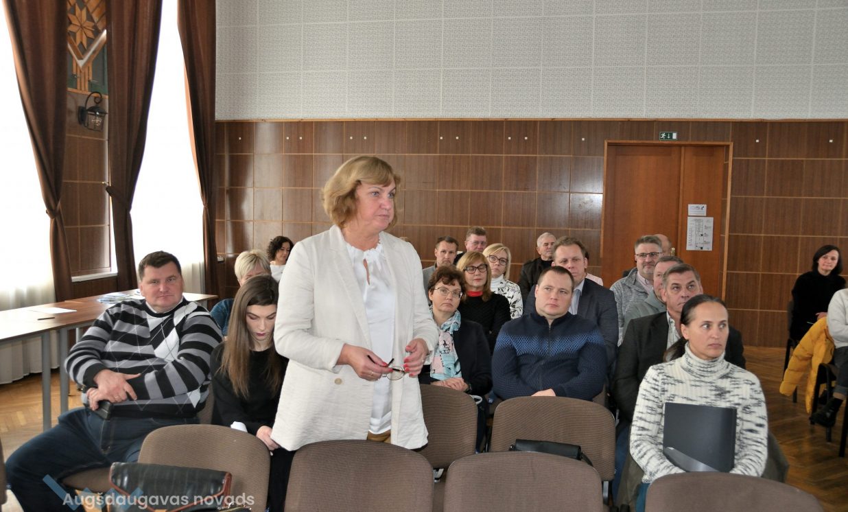 Valsts Meža dienesta Dienvidlatgales virsmežniecības inženiere Lilija Teivāne klātesošos iepazīstināja ar koku ciršanas īpatnībām lausaimniecības zemēs. Viņa uzsvēra, ka, padziļinoties enerģētiskajai krīzei un pieprasījumam, iespējams, pieaugs koku ciršanas apjomi gan mežā, gan ārpus meža, tādēļ ir svarīgi nošķirt, kad cērt kokus mežā un kad ārpus meža, jo abiem gadījumiem ir atšķirīgs normatīvais regulējums. Par mežu zemi neuzskata autoceļa, dzelzceļa, elektrisko tīklu, sakaru tīklu, gāzes vadu, naftas vadu, ūdensvadu zemes nodalījuma joslu, kā arī kapsētas. Mākslīgās vai dabiskās koku rindas, kuru platums ir mazāks par 20 m, augļu dārzi, parki vai kokaudzētavas arī netiek pieskaitītas pie mežiem. Līdzīgi ir arī ar atsevišķi no meža esošu patību, kas atbilst meža definīcijai, bet tā nav reģistrēta un ir mazāka par 0,5 ha. Speciāliste arī skaidroja, kad ir nepieciešamas pašvaldības atļaujas, cērtot kokus, kā arī minēja gadījumus, kad platības jāizvērtē pēc atbilstības kategorijai “mežs”. Bez pašvaldības saskaņojuma var cirst kokus, kuru celms ir mazāks par 20 cm, tāpat to ļauts darīt teritorijās, kur koku audzēšana ir liegta saskaņā ar normatīvajiem aktiem. Koku nociršanu nedrīkst atlikt, ja tie apdraud vidi un cilvēka veselību, dzīvību vai īpašumu, bet, pirms to veikt, jāveic fotofiksācija un jāinformē pašvaldība. Aktuālo informāciju par koku ciršanu ir iespējams meklēt dabas datu pārvaldības sistēmā “Ozols”: https://ozols.gov.lv/pub. Par koku ciršanu meža zemēs jāziņo Valsts meža dienestam, norādot zemes vienības kadastra apzīmējumu un plānoto ciršanas apjomu. To ir iespējams izdarīt tiešsaistē Meža reģistrā: https://gis.vmd.gov.lv.