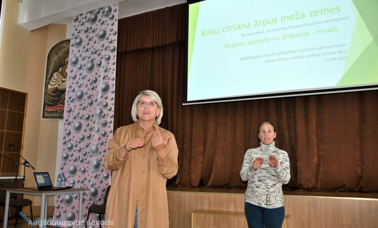 Augšdaugavas novada Kalkūnē 23. septembrī norisinājās ceturtais no kopumā pieciem Latvijas Pašvaldību savienības (LPS) rīkotajiem semināriem "Kā saimniekot videi draudzīgi, ilgtspējīgi un kā veicināt klimatneitralitātes sasniegšanu".Seminārā dažādu pašvaldību dalībnieki uzzināja par koku ciršanu ārpus meža zemes un kā saimniekot tā, lai tiktu veicināta klimatneitralitātes mērķu sasniegšana. Atklājot pasākumu, Augšdaugavas novada pašvaldības domes priekšsēdētājs Arvīds Kucins atzīmēja temata svarīgumu, it īpaši ņemot vērā malkas, šķeldas un granulu faktoru apkures nodrošināšanā.