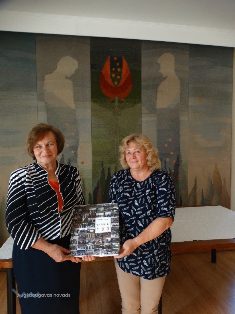 Kalupiešiem dāvanā pasniegta grāmata “Latvijai 100”