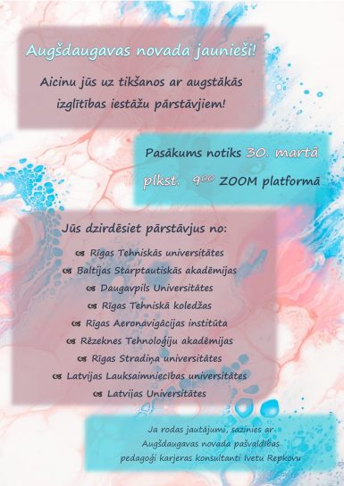 Karjeras attīstības atbalsta pasākums “Tikšanās ar augstākās izglītības iestāžu pārstāvjiem”21.03.2022Izglītība