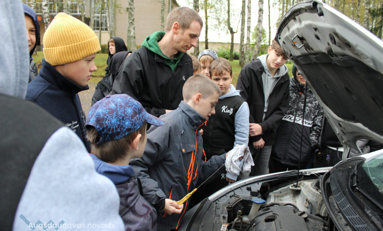 Īpašu interesi izraisīja tikšanās ar profesijas pārstāvi – automehāniķi, kurš stāstīja par to, cik svarīgi savlaicīgi kopt automašīnu, rūpēties par drošību un vidi. Skolas pagalmā viņš praktiski demonstrēja, kā pārbaudīt eļļas līmeni un nomainīt riepu, kā rīkoties pareizi nelaimes gadījumā, uzsverot, ka atbildīga attieksme pret tehniku un apkārtējo vidi ir neatņemama daļa no ilgtspējīgas karjeras.