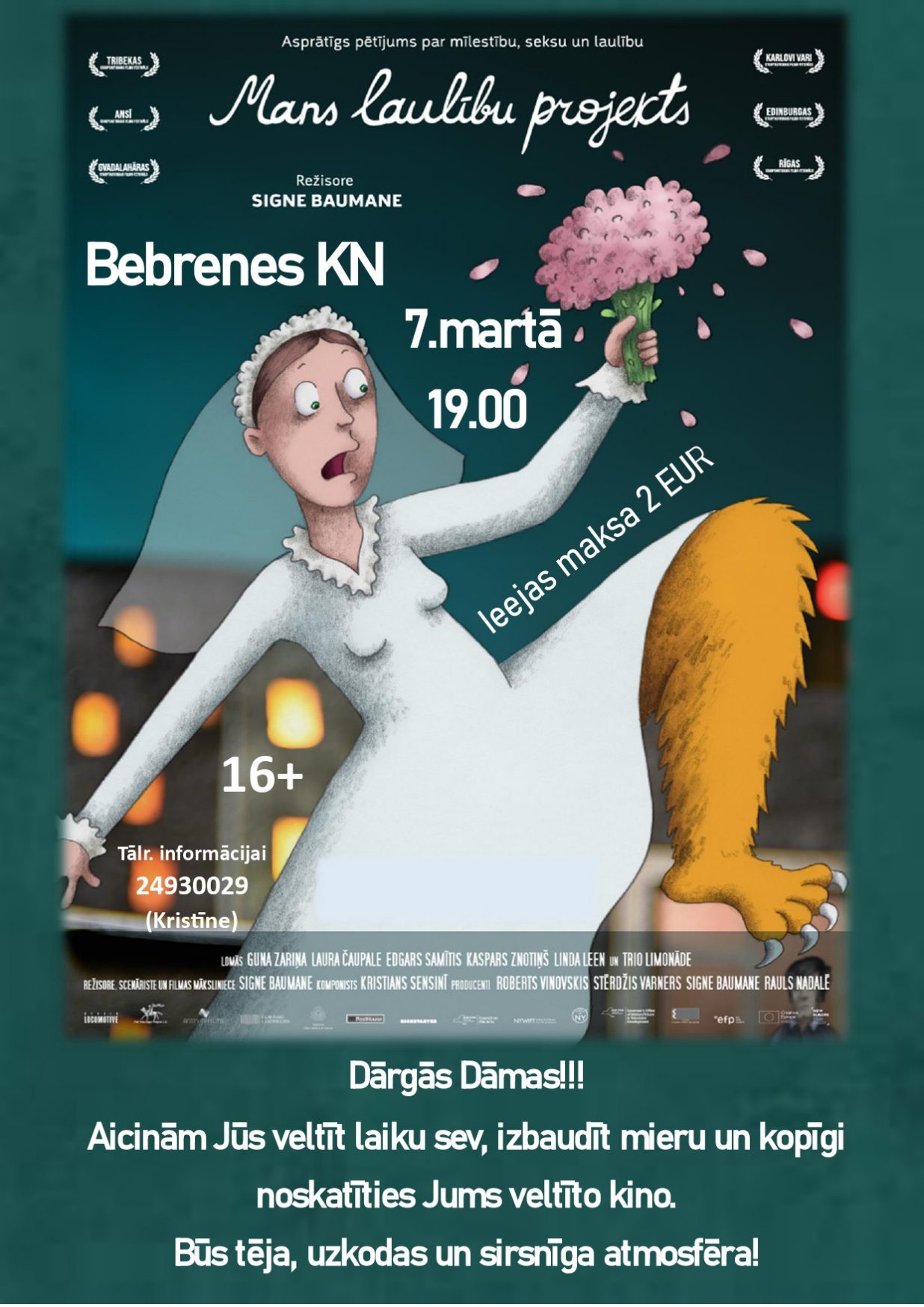 Kino seansa vakars “Mans laulību projekts” Bebrenē