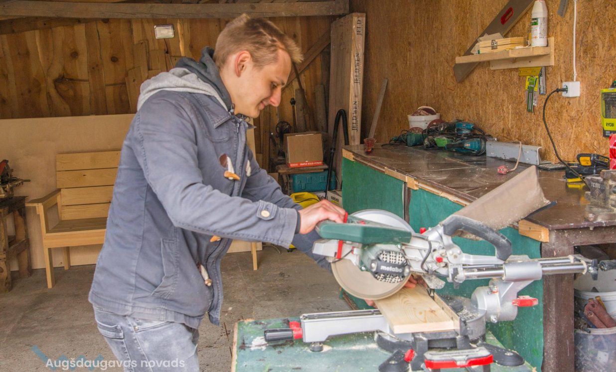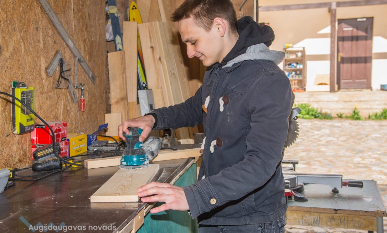 Daugavpils novada Grantu konkursā Egils piedalās jau otro reizi. Pērn vairāk nekā desmit kandidātu konkurencē Egilam pietrūka tikai dažu punktu, lai iegūtu līdzfinansējumu savam projektam. Gada laikā nedaudz mainījās arī pieteikuma ideja, un puisis nolēma piedalīties konkursā atkārtoti. Ja iepriekš tika prasīti vienkāršāki darbarīki, piemēram, zāģi, tad šoreiz viņš jau esot nobriedis iegādāties sarežģītāku iekārtu, jau minēto CNC frēzi. Egils demonstrē arī citus viņa arsenālā esošos instrumentus – leņķa zāģi, ēveli, figūrzāģi, slīpmašīnu.