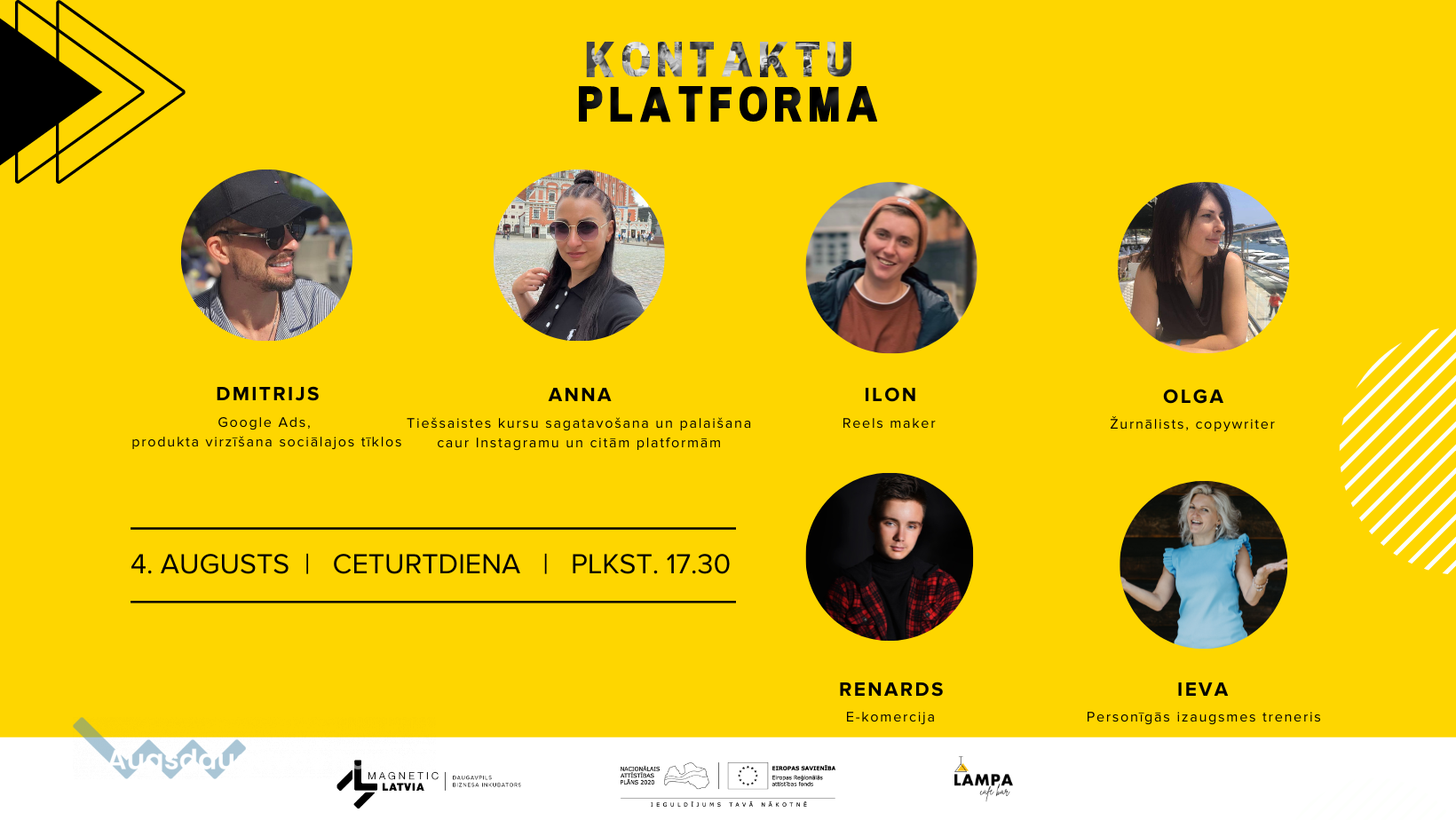 Pasākums “Kontaktu Platforma” ir veidots tā, lai sava darba profesionāļi varētu pastāstīt par sevi un savu darbu, bet uzņēmēji un cilvēki, kuri meklē komandu vai domubiedrus, varētu tos atrast vienuviet. Pasākuma laikā notiks arī tīklošanās sesija, kurā visi dalībnieki varēs savstarpēji iepazīties.