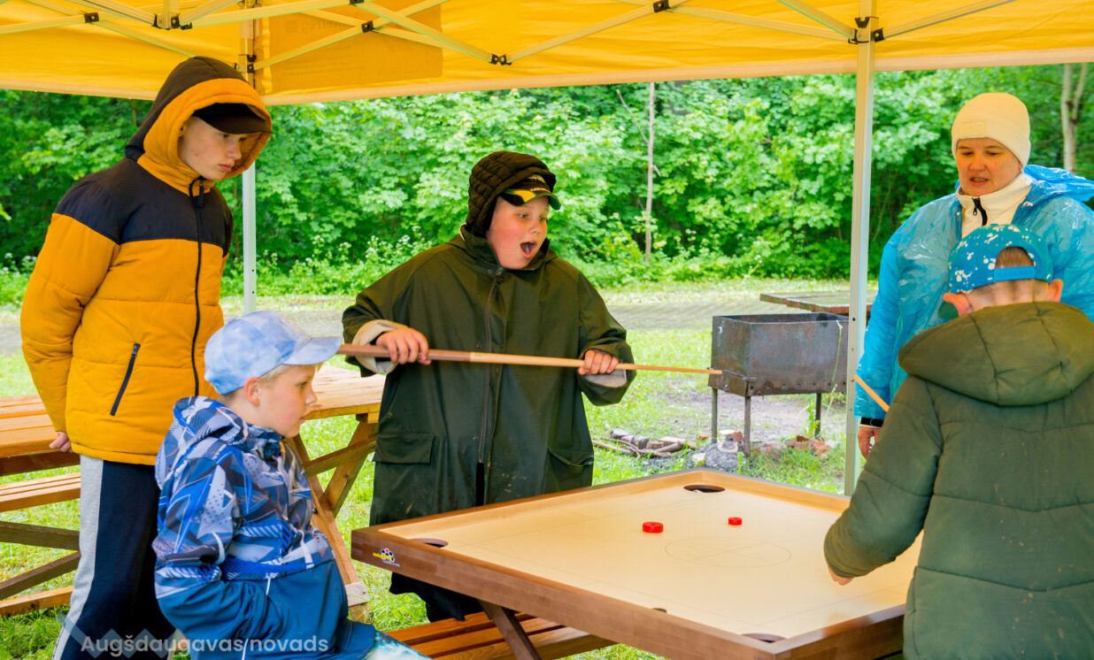 Dienas gaitā dalībnieki izmēģināja savus spēkus makšķerēšanā, spēlēja volejbolu, sacentās novusa turnīrā, pētīja grāmatas dabas bibliotēkā “Dabas stūrītis”, kā arī kopā gatavoja maltīti uz uguns un baudīja pašu pagatavoto ēdienu.