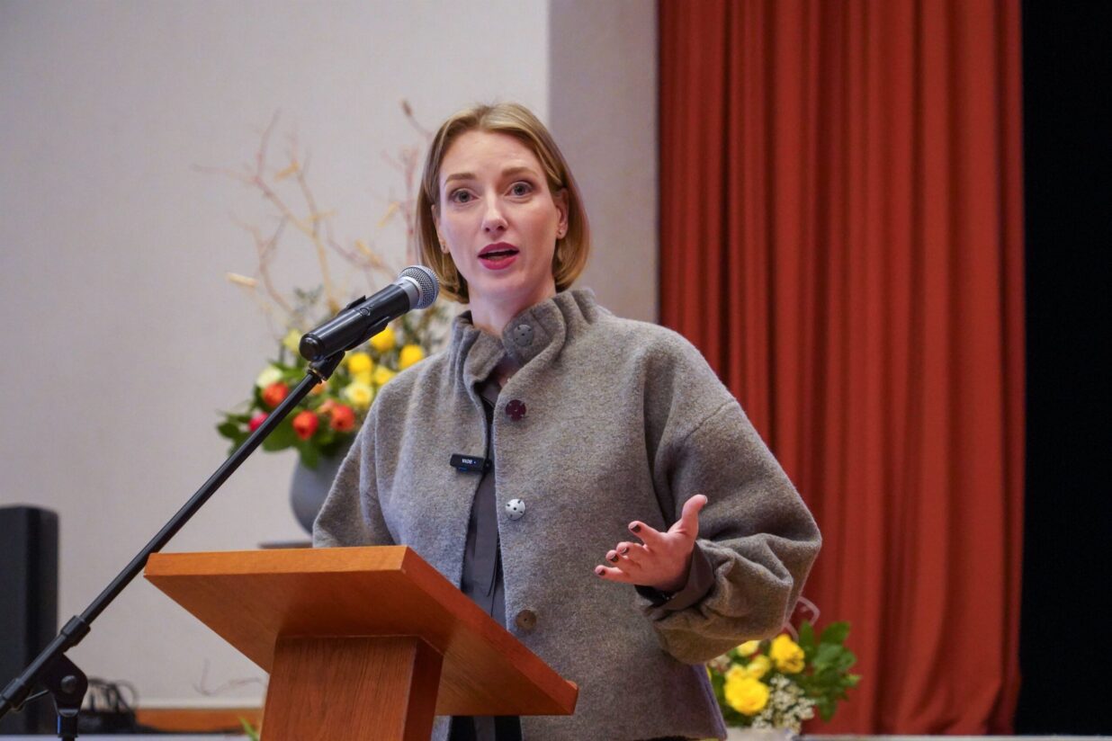 Ministre ieskicēja galvenās vadlīnijas valsts kultūrpolitikā, uzsvēra, ka ļoti svarīga ir aktīva sabiedrības iesaiste kultūrā – gan dalība amatiermākslas kolektīvos, gan kultūras satura veidošanā.