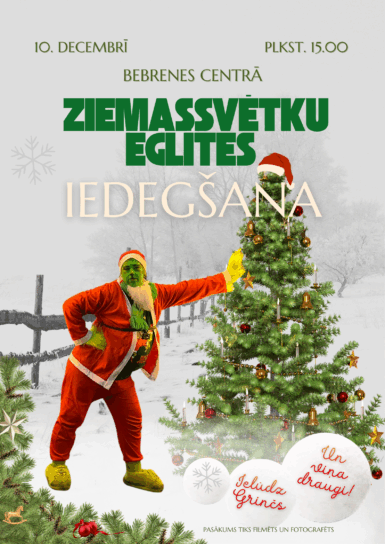 10. decembrī 15.00 Bebrenes ciemata centrā Ziemassvētku eglītes iedegšana “Grinčs un viņa draugi’’