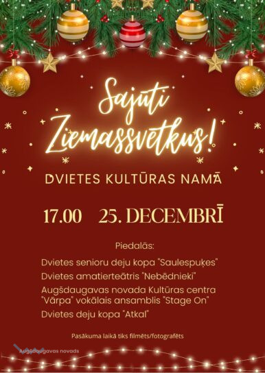 25. decembrī 17.00 Dvietes Kultūras namā koncerts “Sajūti Ziemassvētkus!”