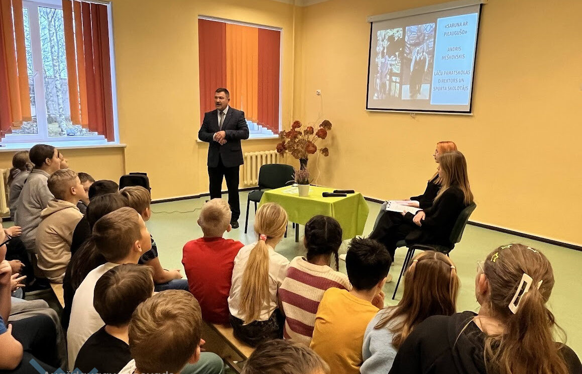 Novembra pirmajā dienā Lāču pamatskolas pašpārvalde organizēja pasākumu 5. - 9. klasēm “Saruna ar pieaugušo”. Sarunas viesis bija skolas direktors Andris Meškovskis. Skolēni sagatavoja jautājumus, lai uzzinātu vairāk par direktora interesēm, hobijiem, pieredzi skolas darbā un nākotnes plāniem. Jautājumus uzdeva 9. klases skolnieces Alīna Grustāne un Sofija Jelisejeva. Šī bija unikāla iespēja iepazīt direktoru ne tikai kā vadītāju, kā sporta skolotāju, bet arī kā personību.