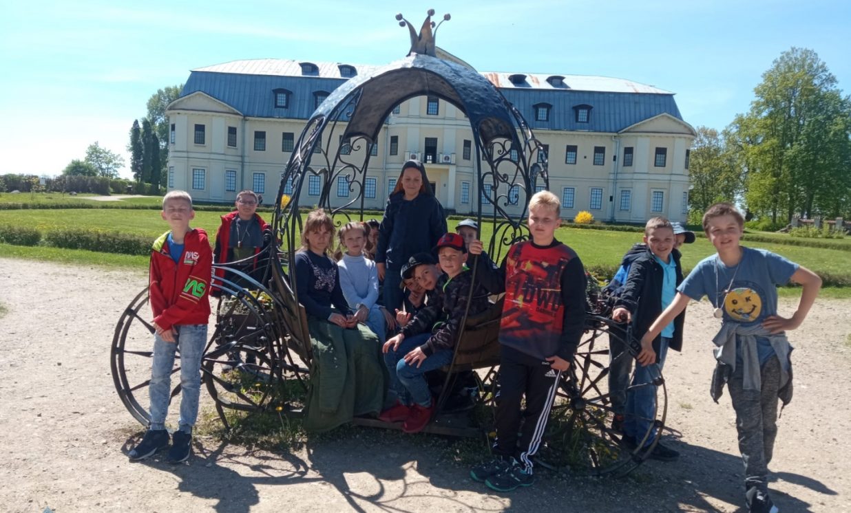 Atpakaļceļā mūsu skolas autobuss nevarēja pabraukt garām Krāslavas nozīmīgākajam kultūrvēsturiskajam un arhitektūras piemineklim grāfu Plāteru pils kompleksam, kurā ietilpst 1791. gadā celtā kungu māja, saimniecības ēkas un baroka stila parks.