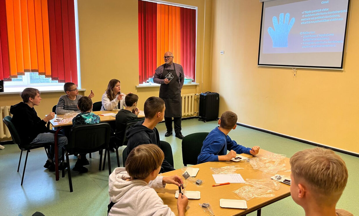 Vecāko klašu skolēni nodarbībā “No dabas veltēm līdz produktam” iepazinās ar pārtikas ražošanas procesu un kvalitātes kontroles nozīmi. Ievaddaļā jaunieši uzzināja par pārtikas tehnologa profesiju, darba pienākumiem un izmantotajiem instrumentiem, savukārt praktiskajā daļā paši iejutās pārtikas nozares speciālistu lomā. Ar refraktometru skolēni mērīja sulas cukura un pH līmeni, veica organoleptisko analīzi, aprēķināja nepieciešamo cukura daudzumu gala produktā un salīdzināja rezultātus. Darbojoties praktiski, skolēni attīstīja prasmes strādāt ar mēraparātiem (refraktometri 0–32% un +32% Brix), veikt aprēķinus un izvērtēt iegūtos datus. Nodarbība palīdzēja izprast, cik cieši ķīmija un tehnoloģijas saistītas ar ikdienas dzīvi, un atklāja karjeras iespējas pārtikas nozarē.