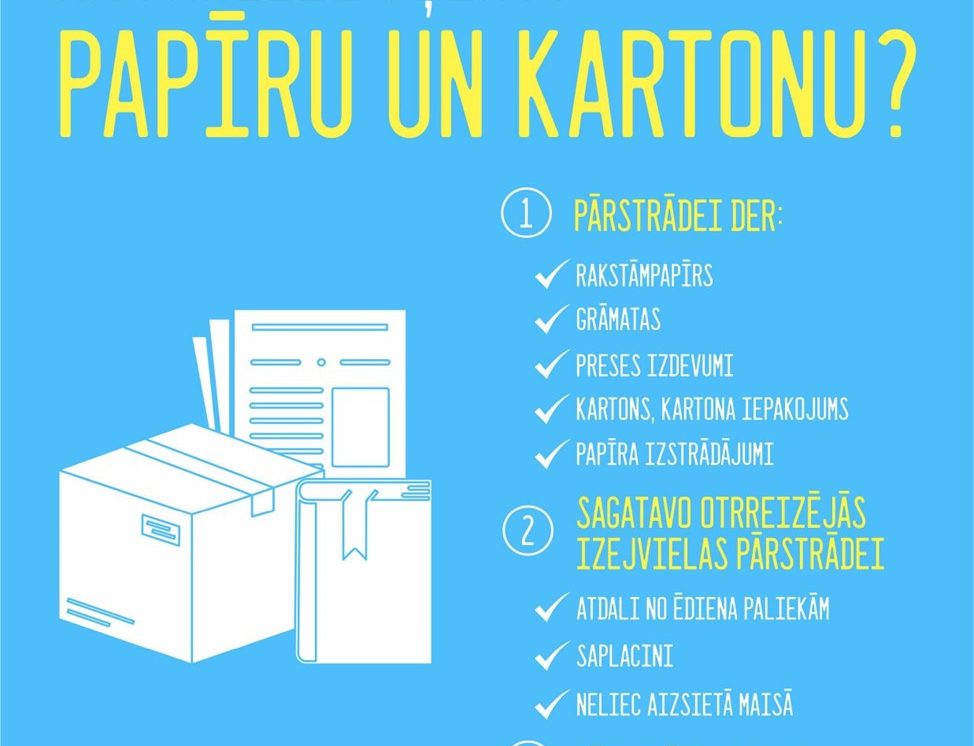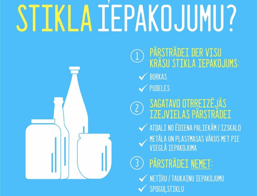 Lai atkritumi nonāktu otrreizējā pārstrādē un jaunu izejvielu ražošanā, atkritumi jāšķiro pa veidiem – stikla tara, PET un plastmasas iepakojums, metāla iepakojums, papīrs un kartons jāmet atsevišķajos konteineros. Svarīgs nosacījums šķirojot un metot atkritumus šķiroto atkritumu konteineros – katram atkritumu veidam ir jābūt tīram, bez pārtikas vai citiem atlikumiem, un tas nedrīkst būt sajaukts ar cita veida atkritumiem.