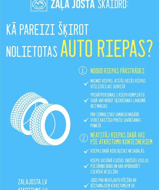 SIA “Atkritumu apsaimniekošanas Dienvidlatgales starppašvaldību organizācija” nodrošina divu šķiroto atkritumu savākšanas laukumu darbību: Liģinišķu ielas rajonā, Daugavpilī; Sadzīves atkritumu poligonā “Cinīši”, Demenes pagastā, Augšdaugavas novadā. Laukumos fiziskas personas var nodot tikai mājsaimniecībās radītos šķirotos atkritumus: apgaismes iekārtas un spuldzes, baterijas un akumulatorus, elektriskās un elektroniskās iekārtas, eļļas filtrus, izlietotas motoreļļas, pārnesumu un citas eļļas, koku, koka iepakojumu, lielgabarīta atkritumus, metālu, nolietotās riepas, papīru, plastmasu, stiklu, tekstilu. Papildus norādāms, ka šķiroto atkritumu savākšanas laukumos nolietotās automobīļu riepas drīkst nodot gada laikā vienu komplektu (četras riepas) no vienas automašīnas, uzrādot automobiļa tehnisko pasi.