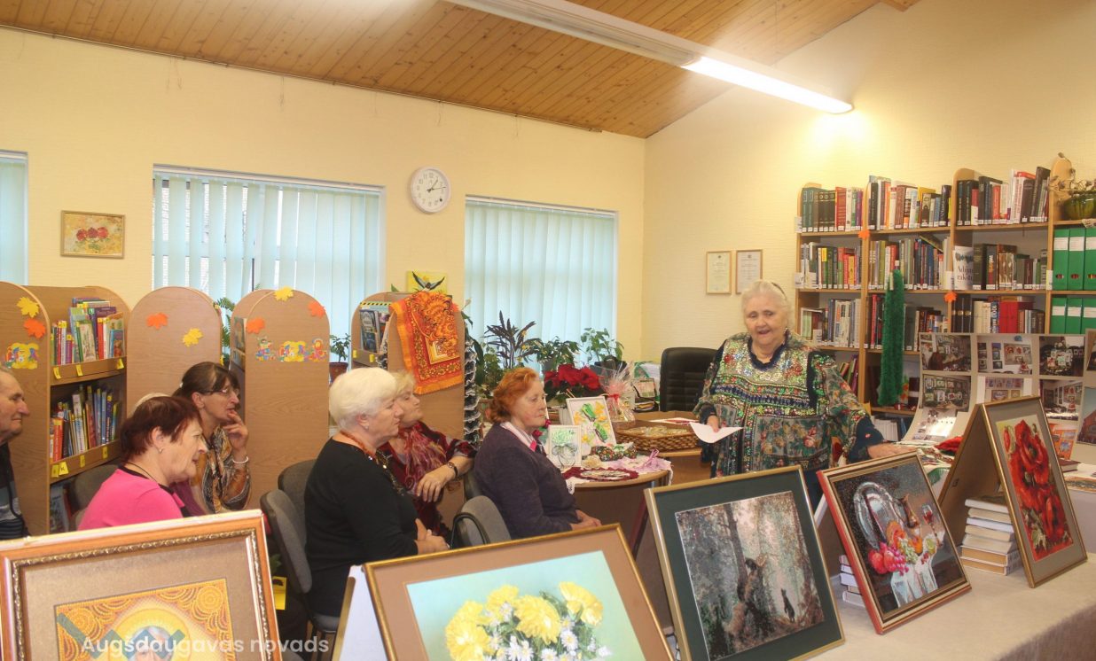 Uz tikšanos ar lasītājiem bija uzaicināta Daugavpils krievu kultūras centra direktore Geroida Bogdanova ar pašdarinātu rokdarbu un gleznu izstādi. Šo sievieti var apbrīnot par paveiktajiem darbiem, par viņas neizsīkstošo enerģiju un vēlmi darboties. Viņa apmeklētājus iepazīstināja ar pērļu gleznu izgatavošanas procesu un uzdāvināja prjaņikus ar krievu kultūras centra logo. Pasākuma noslēgumā Maļinovas pagasta bibliotēka dāvanā saņēma Geroidas izgatavotu pērļu gleznu un uzaicinājumu ciemoties krievu kultūras centrā. Liels paldies!